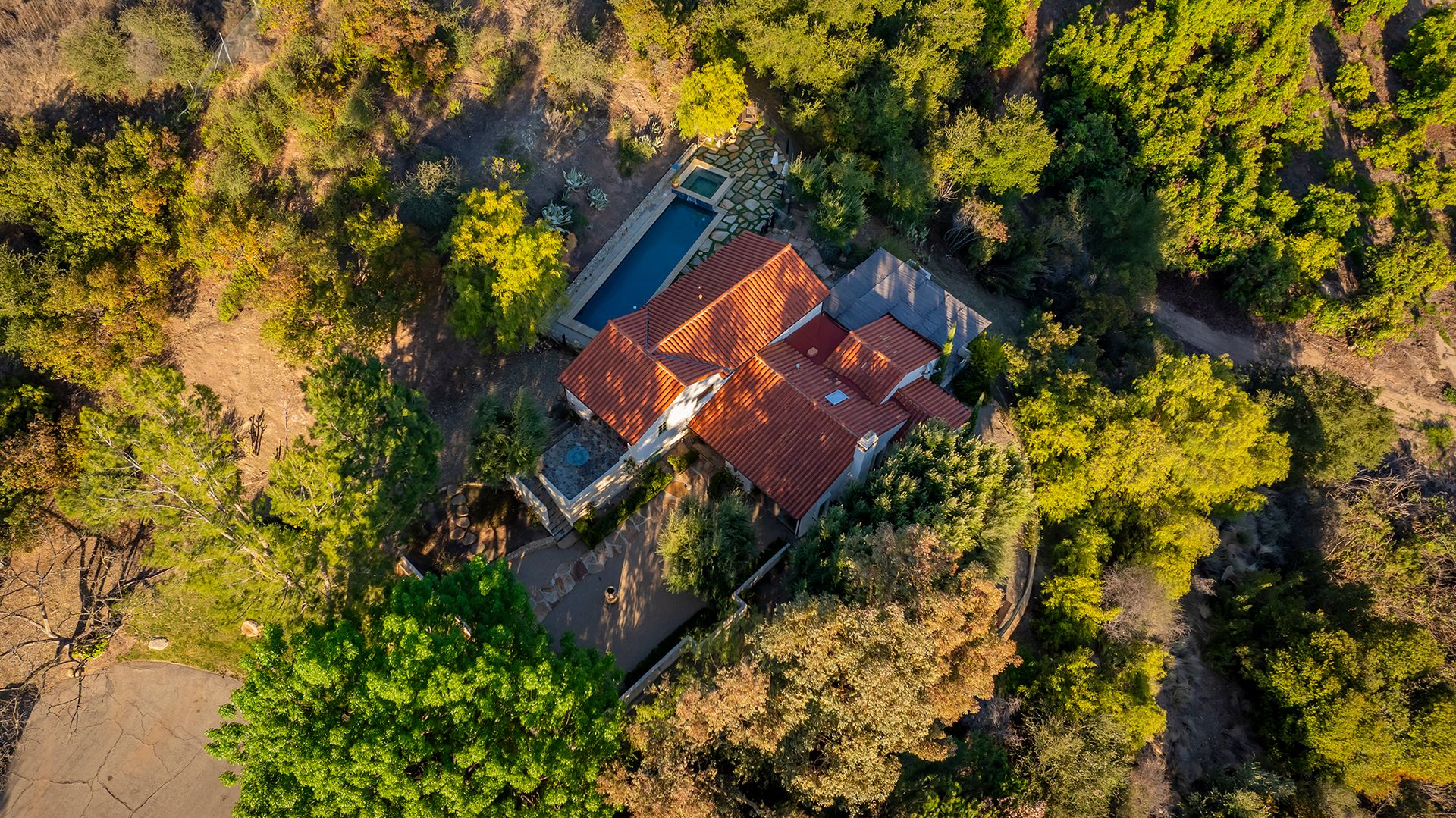 A detached studio with a full bath is ideal for creative work, wellness, or guests. Outdoors, enjoy a lap pool, jacuzzi, shaded dining areas, and your own olive orchard—all immersed in the beauty of nature.