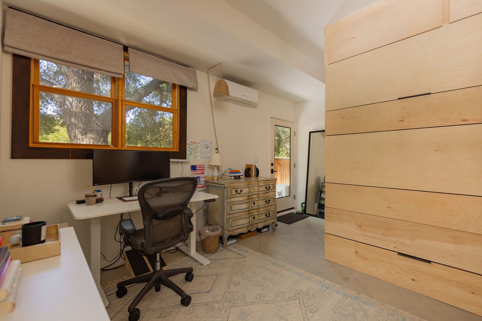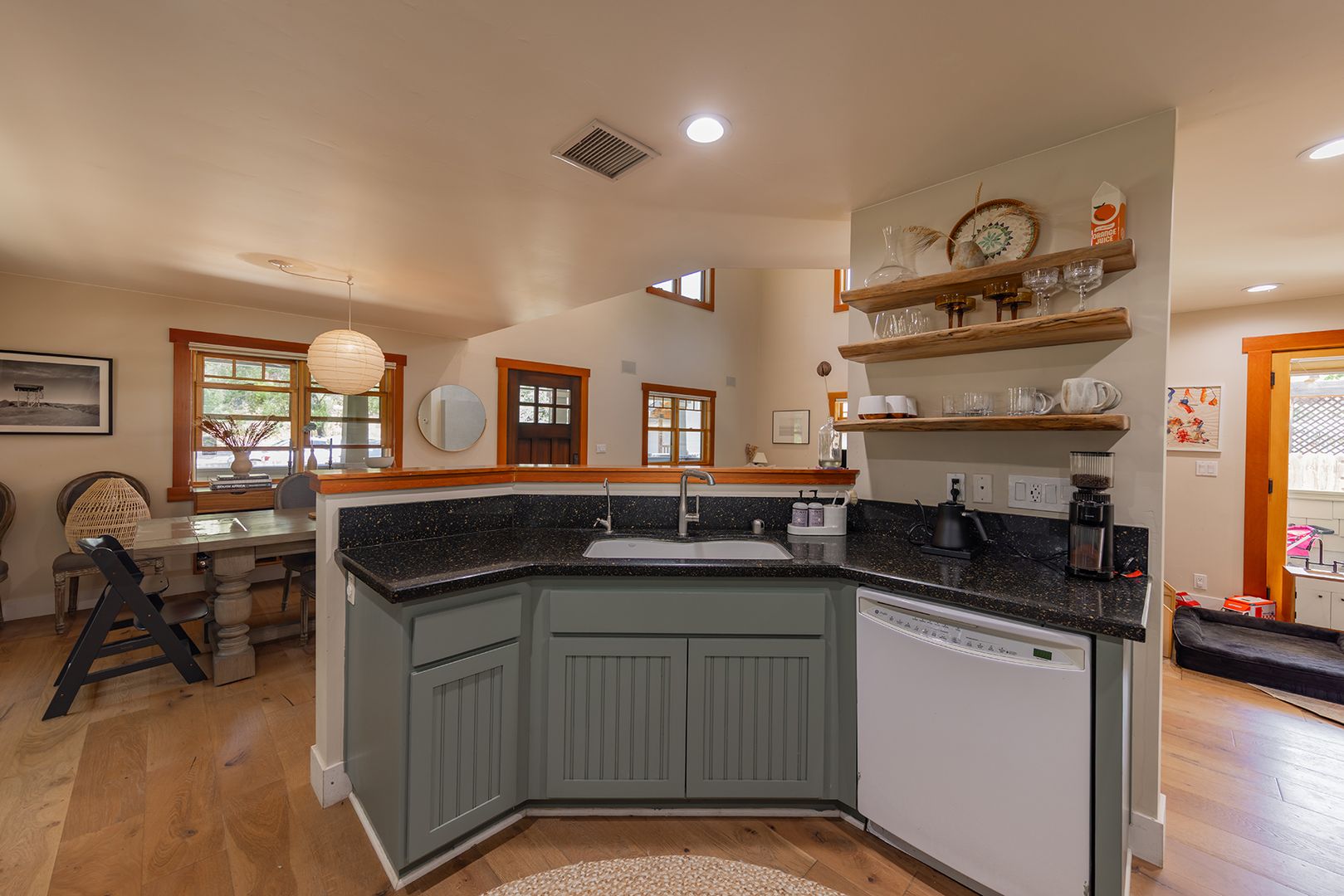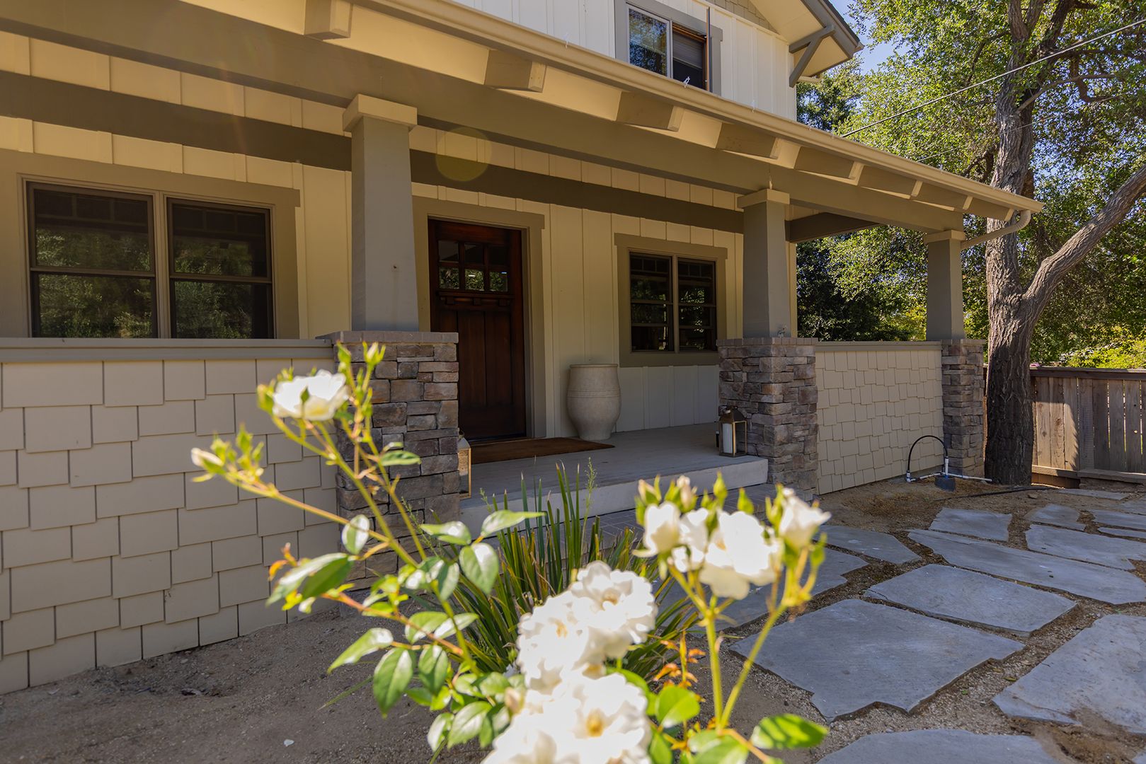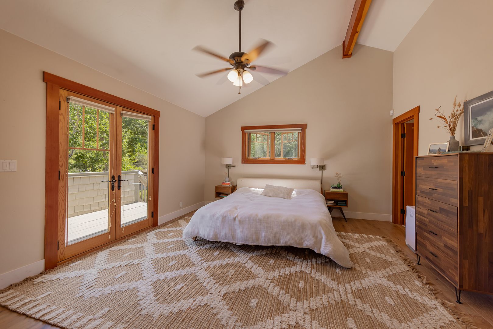 Creek Road Craftsman offering the best of both worlds—just minutes to downtown Ojai and a short drive to Ventura beaches. Built in 2006, this home features vaulted ceilings, an open floor plan, hardwood floors, and timeless Craftsman details throughout. The primary suite includes a private balcony with mountain views. The converted garage provides two offices, a flex space, and a Murphy bed, offering room for additional sleeping or guest accommodations. Situated on a fully fenced half-acre, the professionally landscaped grounds provide privacy, usable outdoor space, and a peaceful setting.