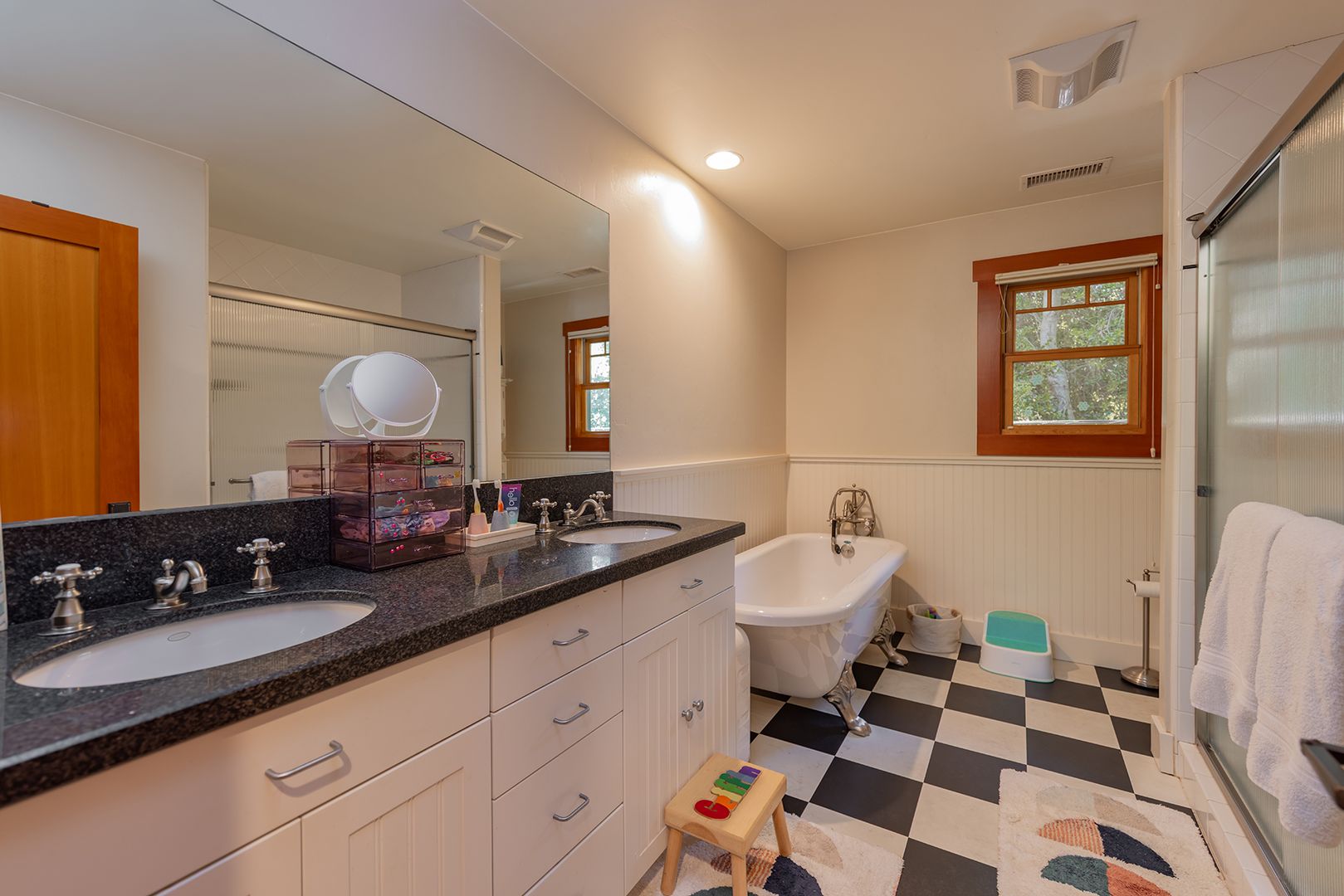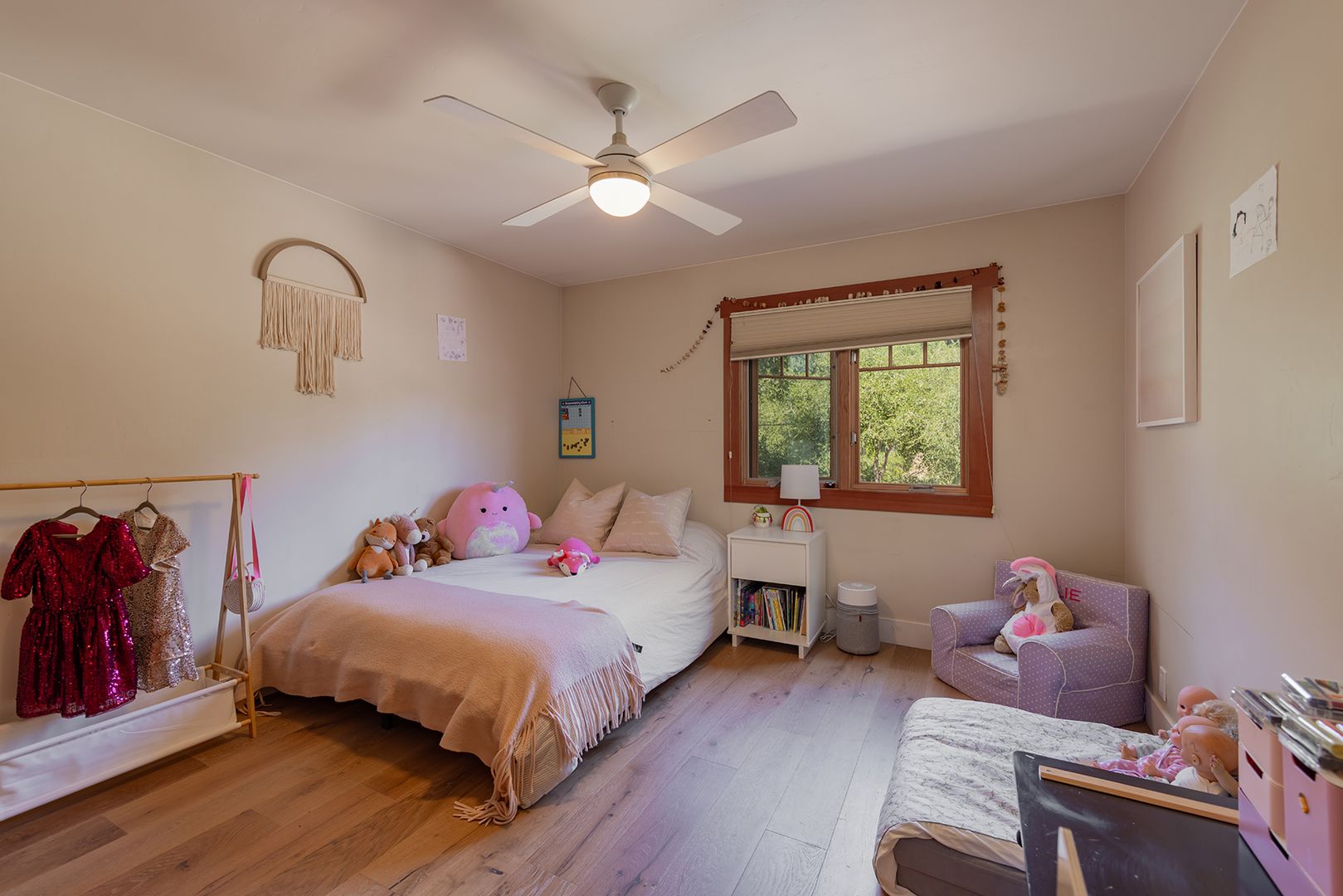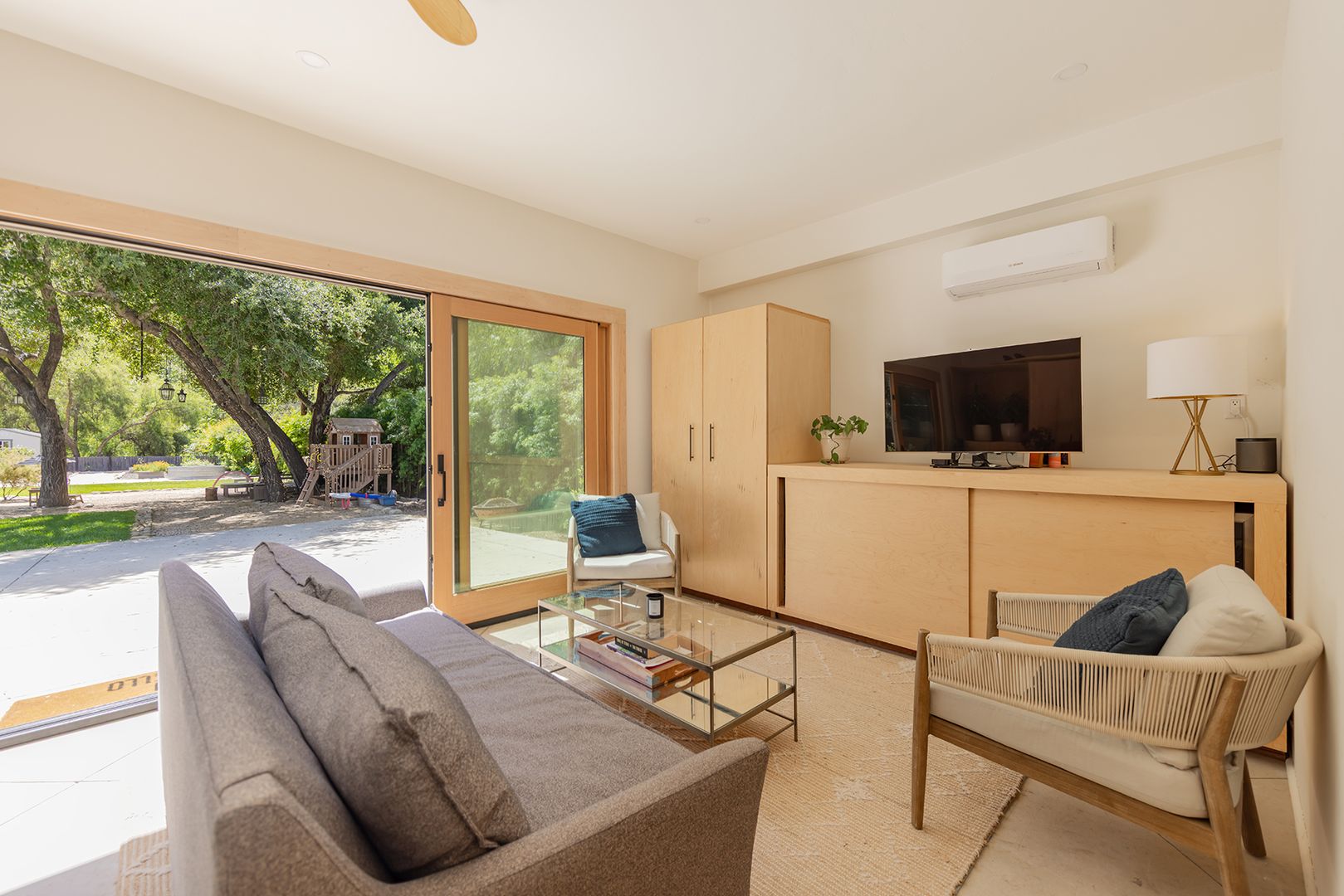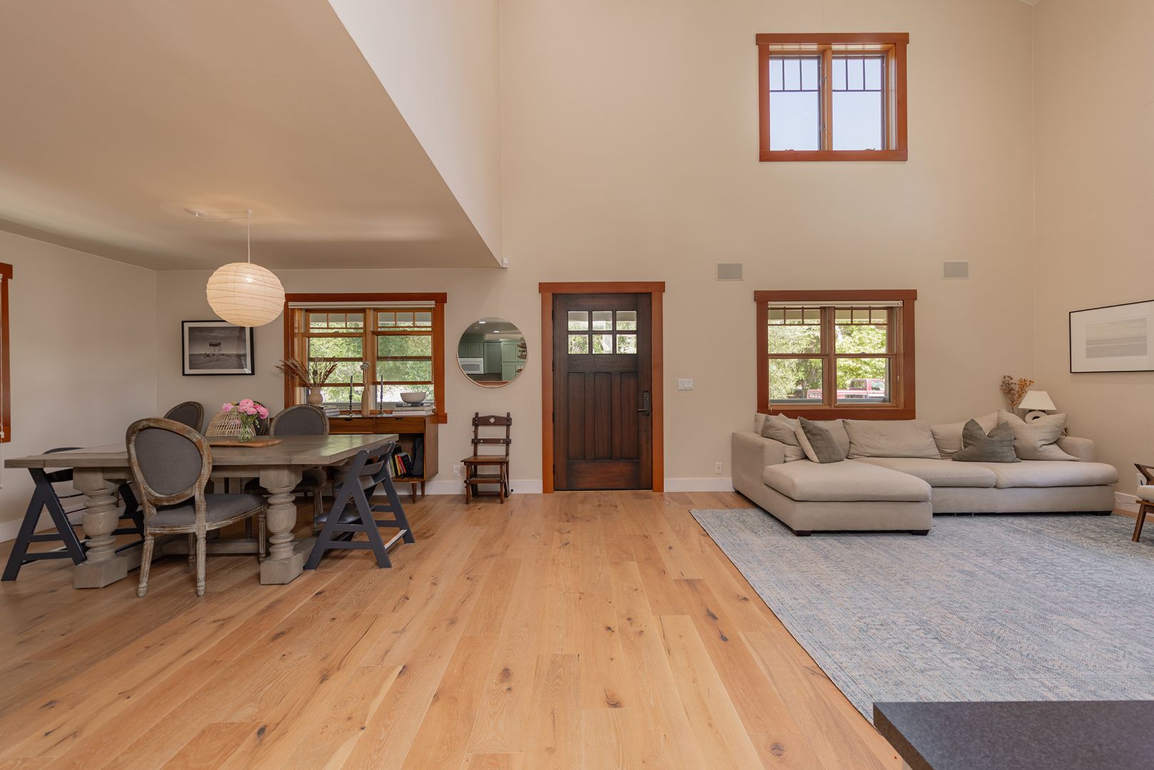 Creek Road Craftsman offering the best of both worlds—just minutes to downtown Ojai and a short drive to Ventura beaches. Built in 2006, this home features vaulted ceilings, an open floor plan, hardwood floors, and timeless Craftsman details throughout. The primary suite includes a private balcony with mountain views. The converted garage provides two offices, a flex space, and a Murphy bed, offering room for additional sleeping or guest accommodations. Situated on a fully fenced half-acre, the professionally landscaped grounds provide privacy, usable outdoor space, and a peaceful setting.